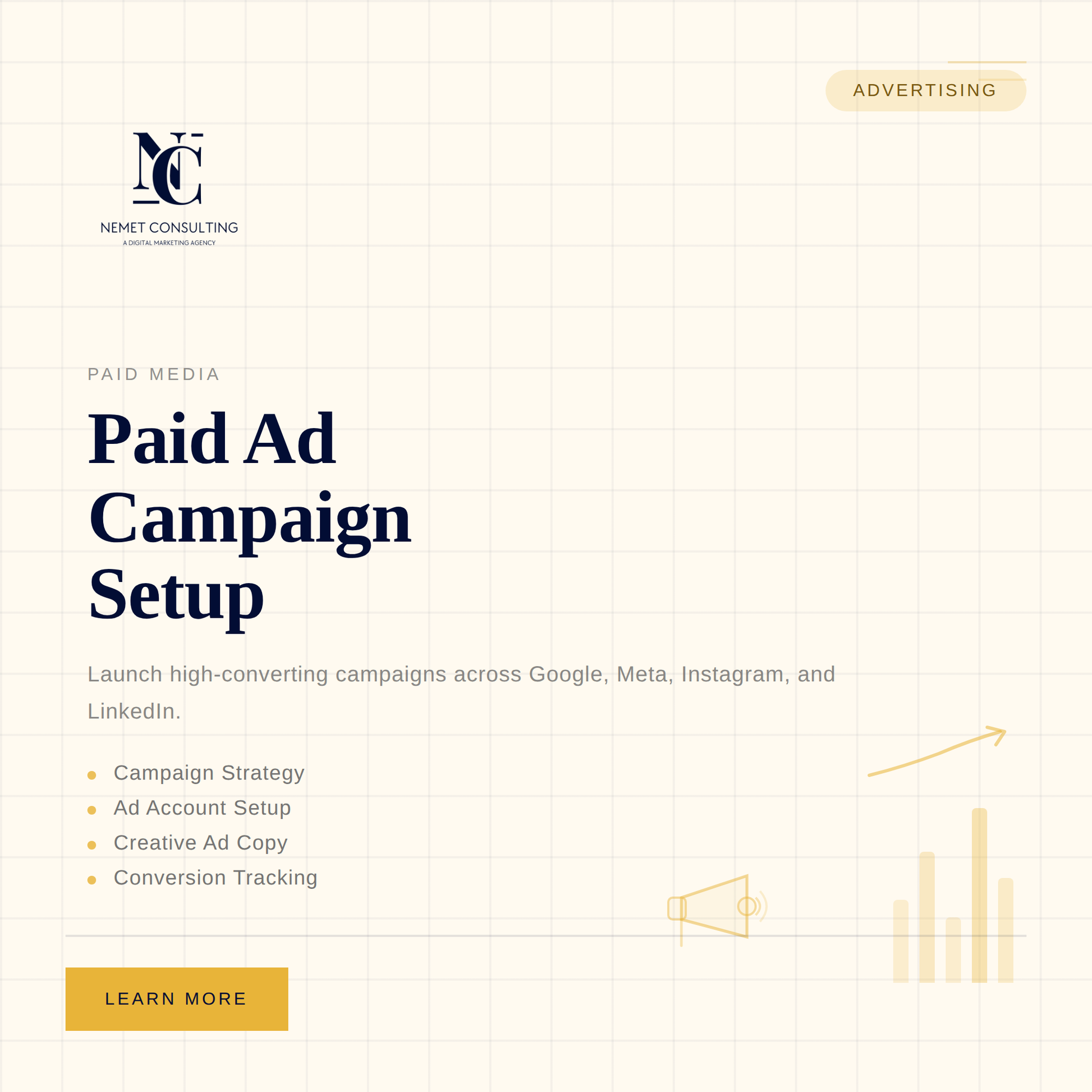 Whether you're promoting a new business, service, or product, we create a structured ad campaign that maximizes visibility and sets your marketing up for success.
